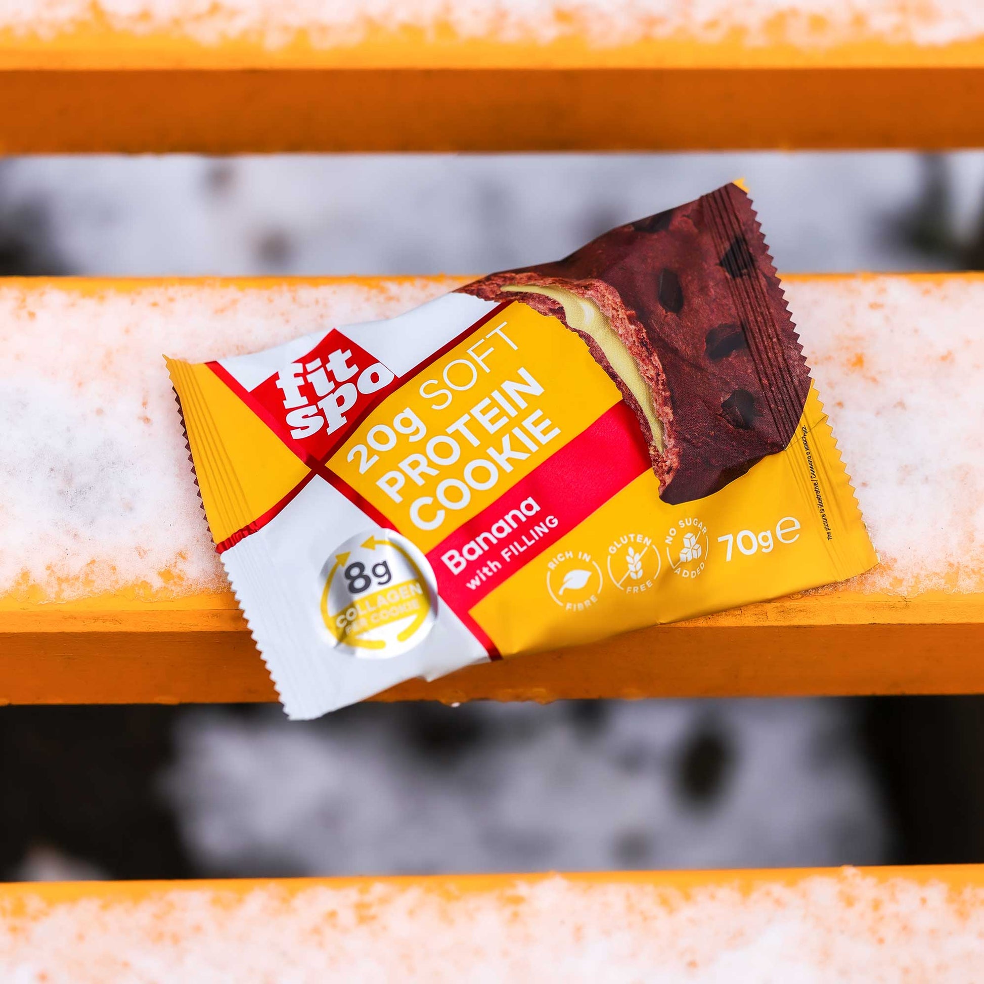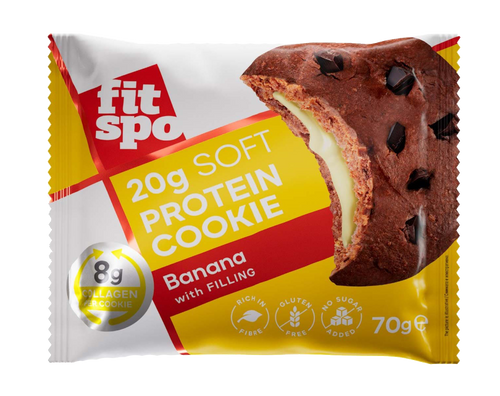 The taste of FitSpo Soft Protein Cookie Banana is soft, dense, and irresistibly creamy. The core of protein cream and the fresh banana aroma turn every bite into a moment of pleasure – without compromising results and nutritional balance.