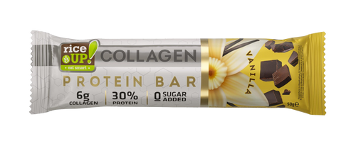 RiceUP! The collagen bar is the right choice for a healthy and tasty dessert for the afternoon coffee or as a quick snack at work, at school, during travel, as a mid-meal or after training, because it contains no added sugar, gluten, palm oil, preservatives, artificial flavors, and sweeteners, and is rich in fiber, which further supports the digestive process.