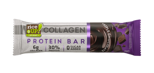RiceUP! The collagen bar is the right choice for a healthy and tasty dessert for your afternoon coffee or as a quick snack at work, at school, during travel, or after training, because it contains no added sugar, gluten, palm oil, preservatives, artificial flavors, or sweeteners, contains 30% milk protein, and is rich in fiber, which further aids the digestive process.
