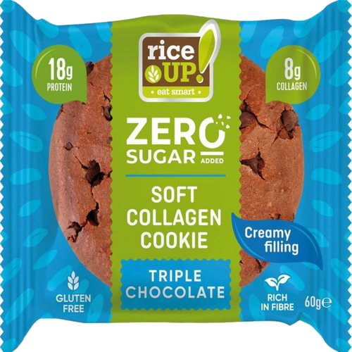 RiceUp! Collagen cookie is a healthy and tasty dessert for the afternoon coffee or as a quick snack at work, at school, during travel, or after training, because it contains no added sugar, gluten, palm oil, preservatives, artificial flavors, and sweeteners, and is rich in fiber, which further aids the digestive process.