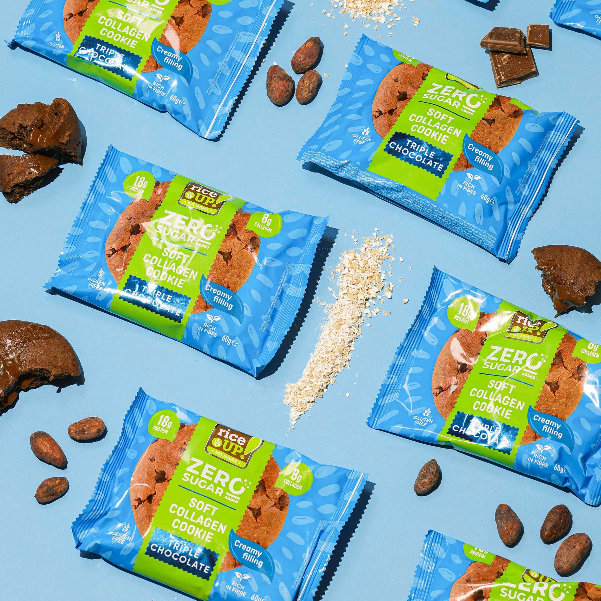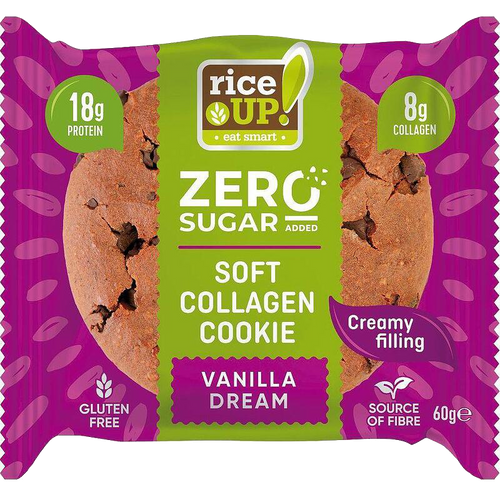 RiceUp! Collagen cookie is a revolutionary dessert from the new generation of functional products, without compromising on taste. It contains under 240 calories – ideal for those who monitor their calorie intake. Made entirely from gluten-free oats, with a soft texture and an abundance of chocolate pieces and a core of delicate cocoa filling.