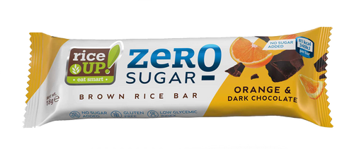 RiceUp! ZERO SUGAR rice bar is a completely natural, gluten-free bar made from whole grain brown rice without added sugar, coated with rich dark chocolate, sugar-free and orange oil. A light and tasty, healthy dessert for a busy everyday life that you can enjoy without guilt. It will become your favorite low-calorie and healthy dessert with less than 80 calories at the office, before or after a workout, on a hike, and even in your child's lunchbox! RiceUp! ZERO SUGAR rice bar has a low glycemic index, and its consumption does not sharply affect blood sugar levels, allowing energy to be released gradually and evenly.