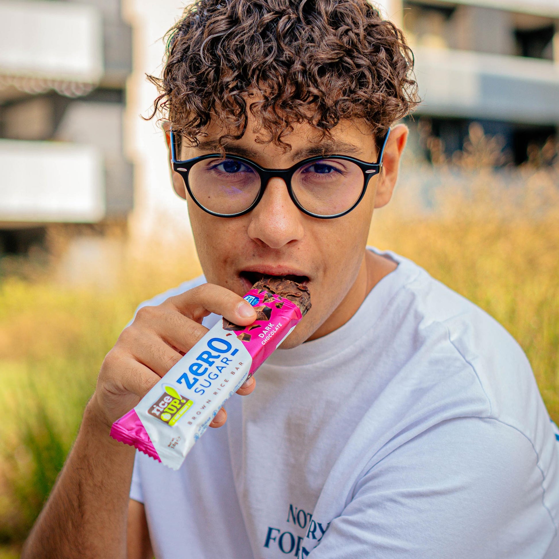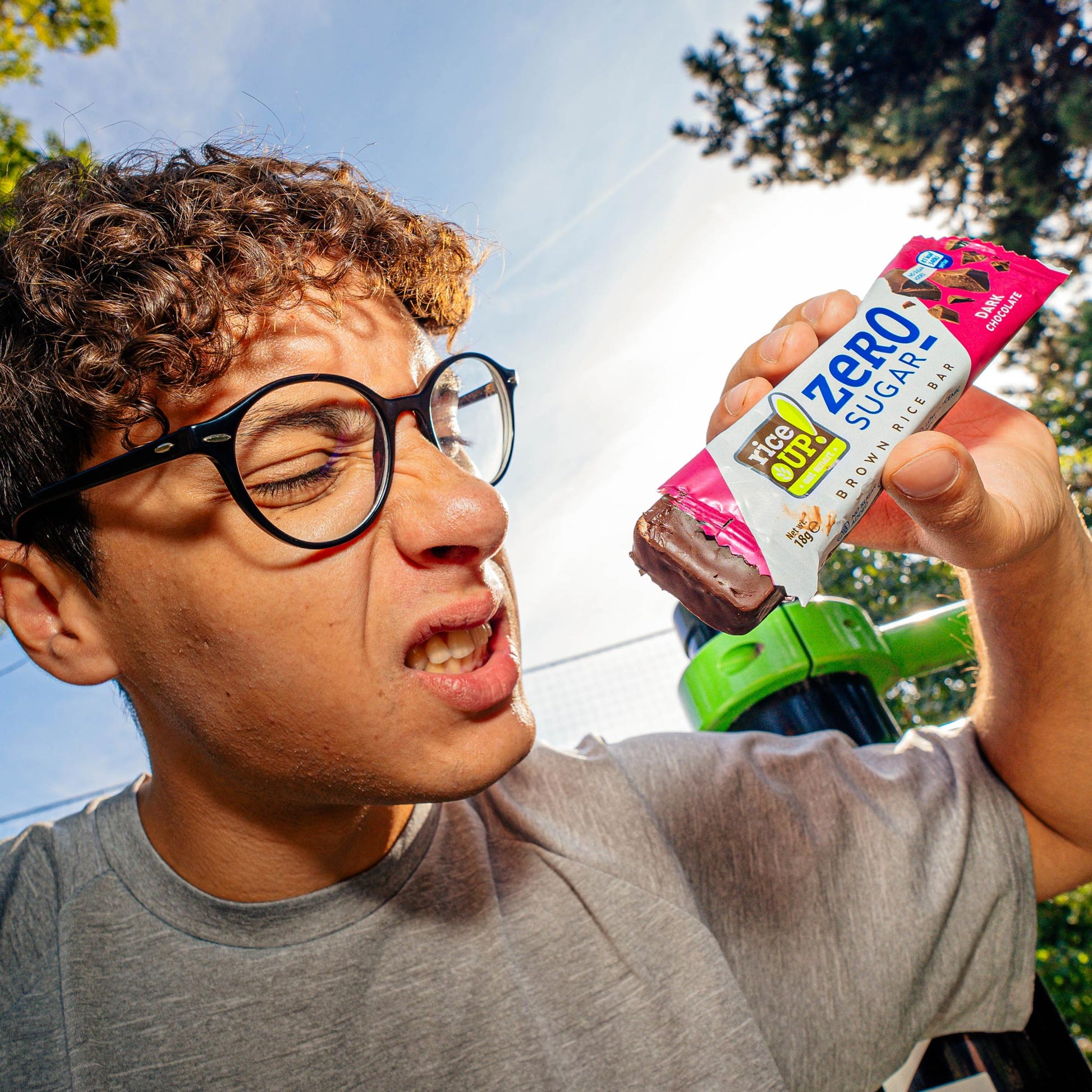 RiceUp! ZERO SUGAR rice bar is a completely natural, gluten-free bar made from whole grain brown rice with no added sugar, coated in rich dark chocolate, sugar-free. A light and tasty, healthy dessert for a busy everyday life that you can enjoy without guilt. It will become your favorite low-calorie and healthy dessert with less than 80 calories at the office, before or after a workout, on a hike, and even in your child's lunchbox! RiceUp! ZERO SUGAR rice bar has a low glycemic index, and its consumption does not sharply affect blood sugar levels, allowing energy to be released gradually and evenly.