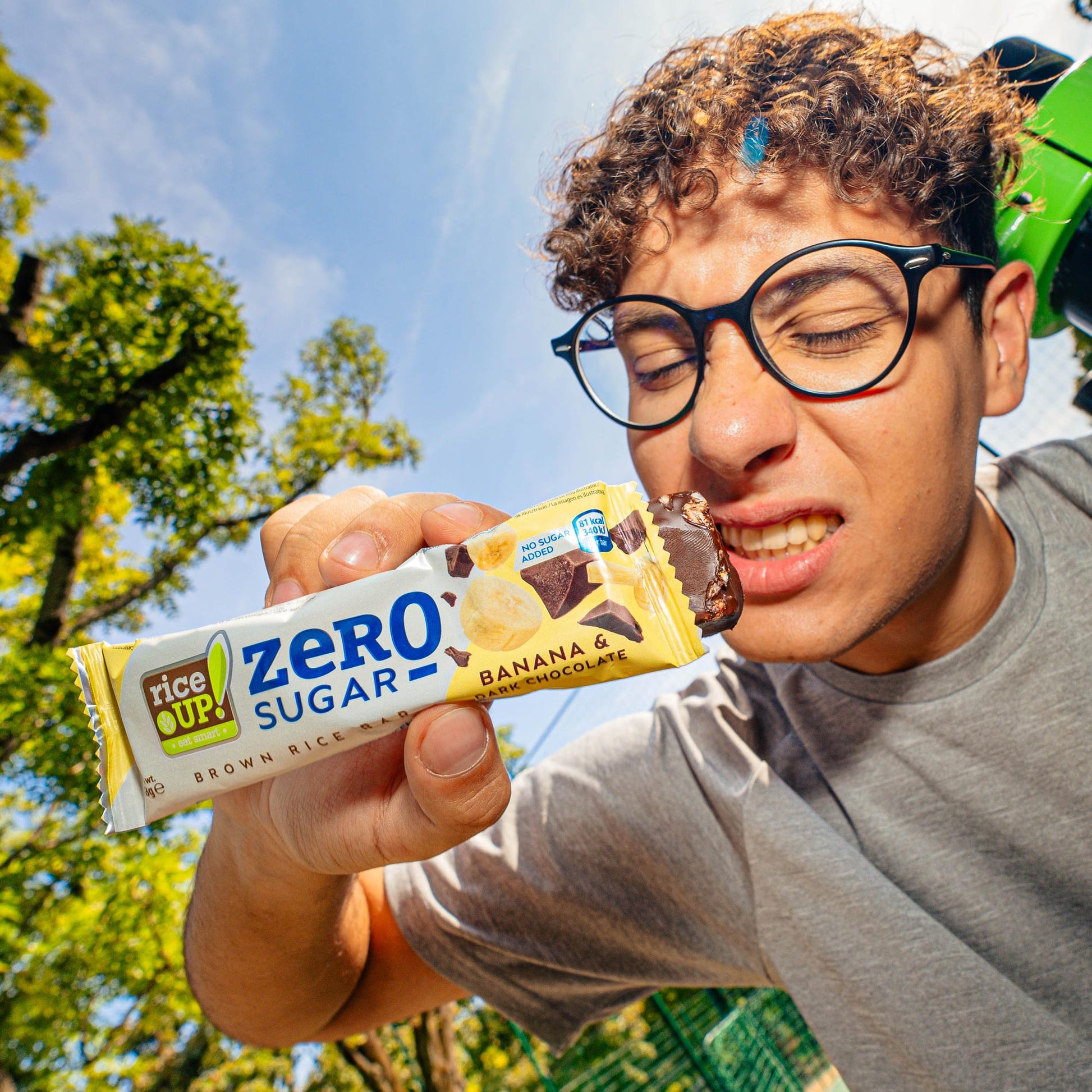 The RiceUp! ZERO SUGAR rice bar is a completely natural, gluten-free bar made from whole grain brown rice with no added sugar, coated in rich dark chocolate, sugar-free and orange oil. A light and tasty, healthy dessert for a busy everyday life that you can enjoy without guilt. It will become your favorite low-calorie and healthy dessert with less than 80 calories at the office, before or after a workout, on a hike, and even in your child's lunchbox! The RiceUp! ZERO SUGAR rice bar has a low glycemic index, and its consumption does not sharply affect blood sugar levels, allowing energy to be released gradually and evenly.