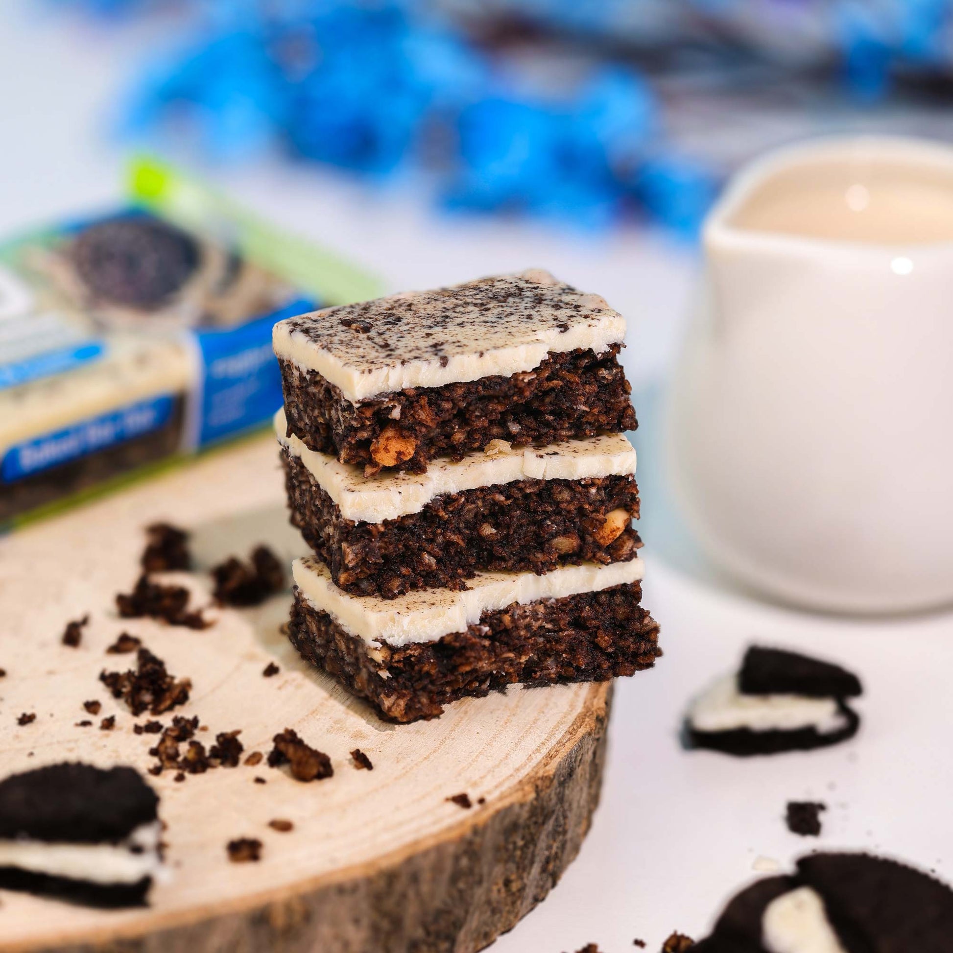 Intense chocolate flavor and topping with a creamy milk taste – like the favorite Oreo dessert: dense, truly appetizing, with a chewy oat texture that satisfies.